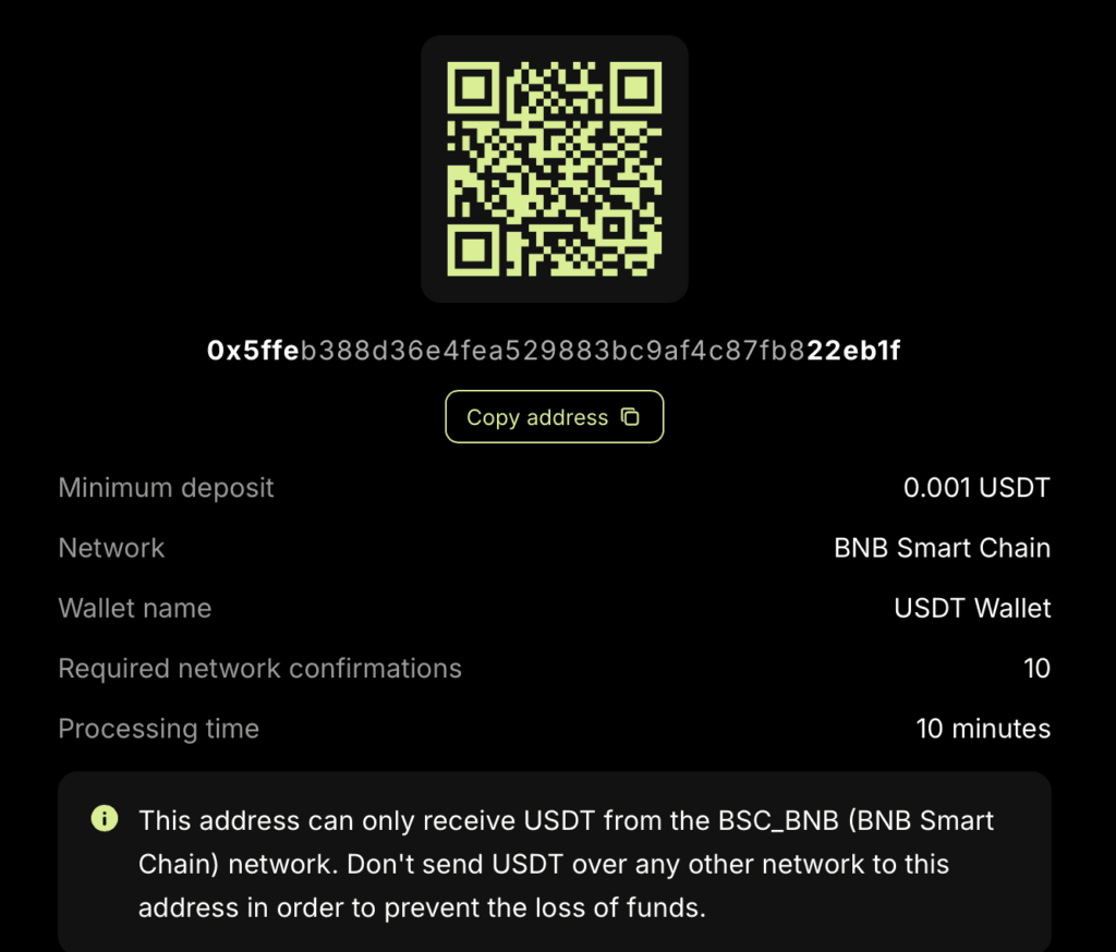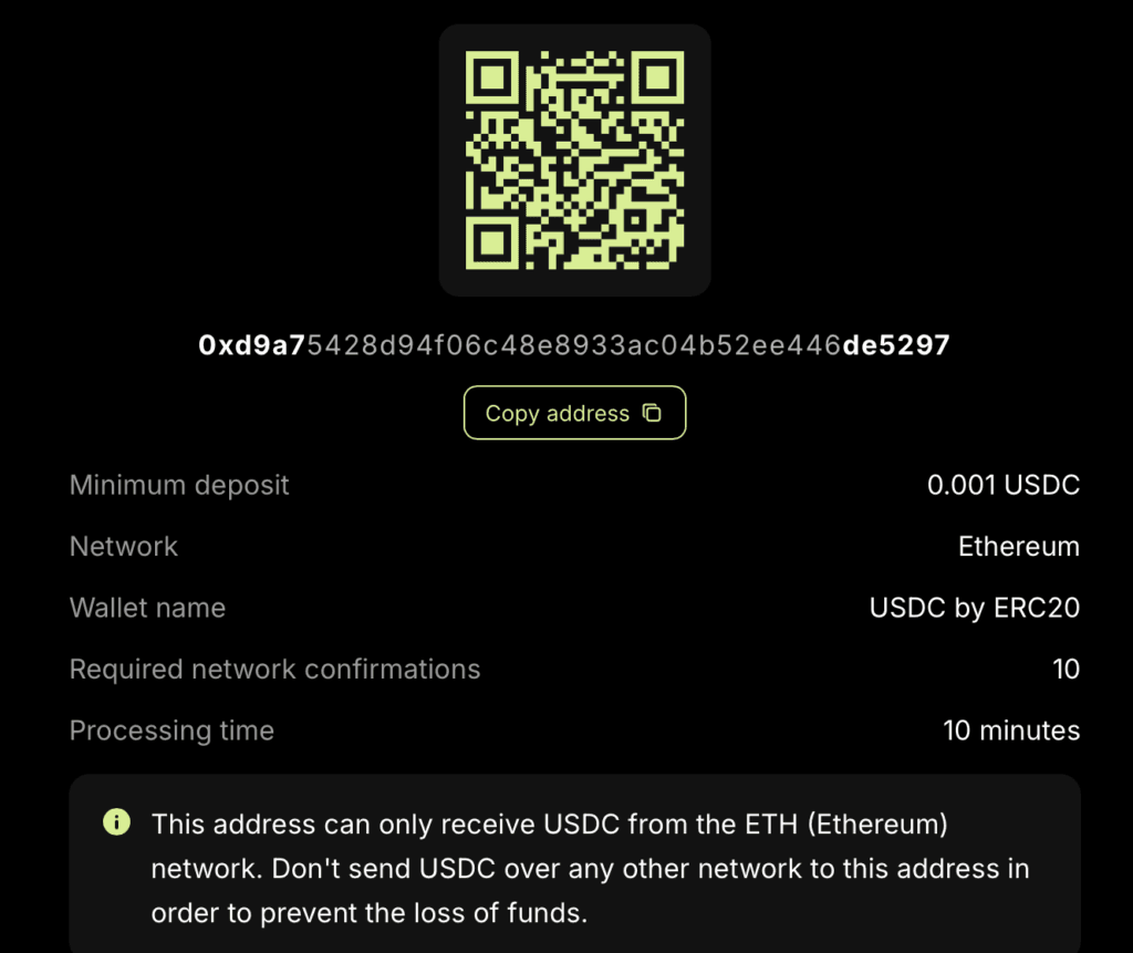 Cut and paste address to your wallet or scan the QR Code.